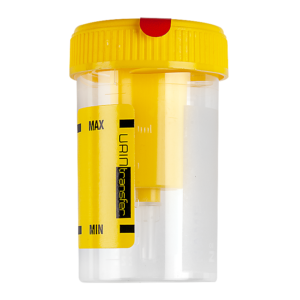 Urine container with paper label with aspiration system for vacuum tubes (120 ml)